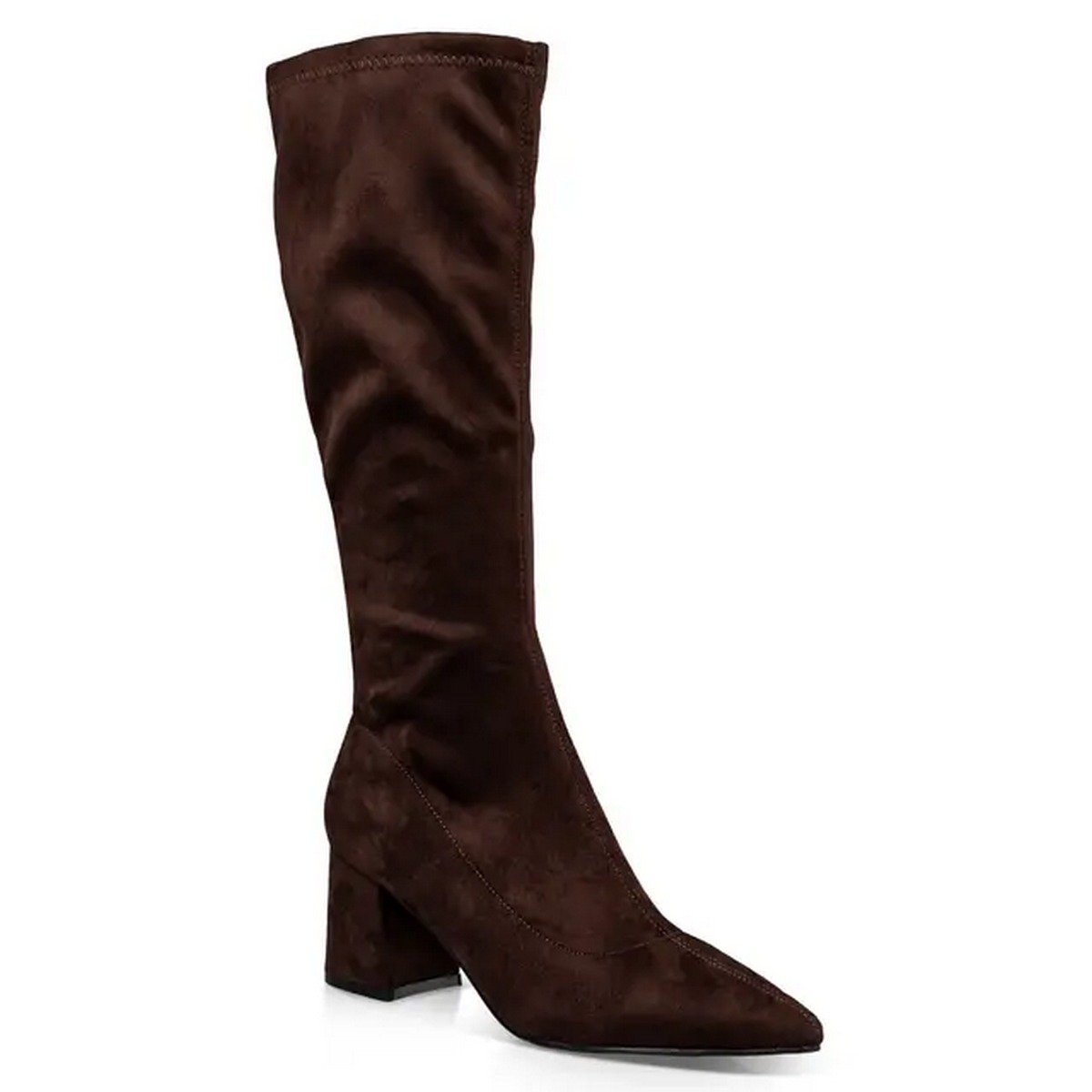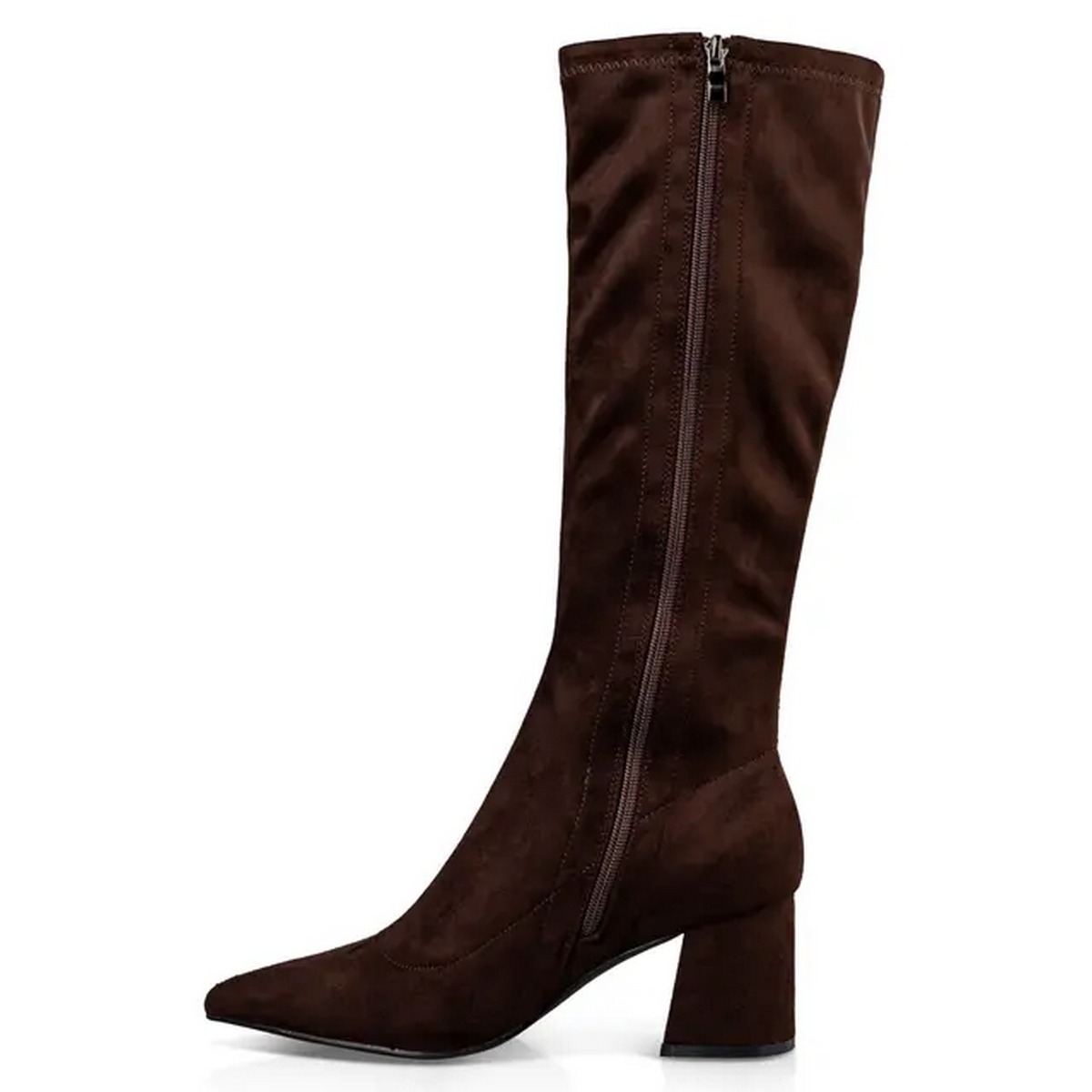 Envie μυτερές μπότες απο συνθετικό σουέτ δέρμα με μεσαίο χοντρό τακούνι.